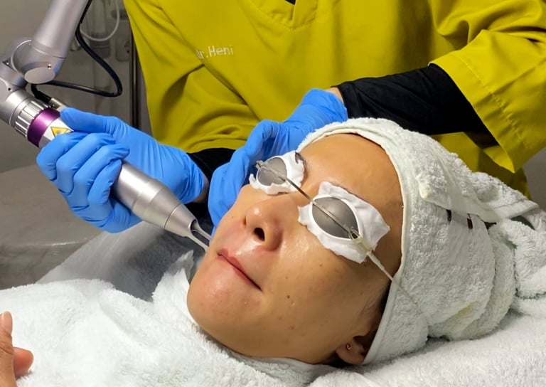Crystal Laser bermanfaat untuk memperbaiki skin tone, tekstur kulit, kerusakan kulit akibat sinar matahari dan kulit yang memiliki bekas luka. Selain itu, dapat mengurangi tanda penuaan seperti garis halus dan kerutan di crow’s feet dan garis alis serta mengurangi munculnya bintik-bintik tanda penuaan.